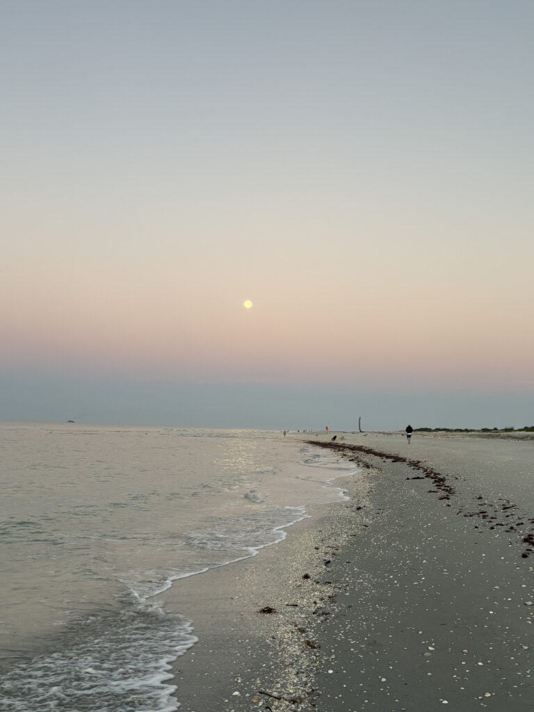 The photos are from Sanibel Island, FL – me walking on water (above), Clouds meet Ocean and the SuperMoon at Sunrise (below).